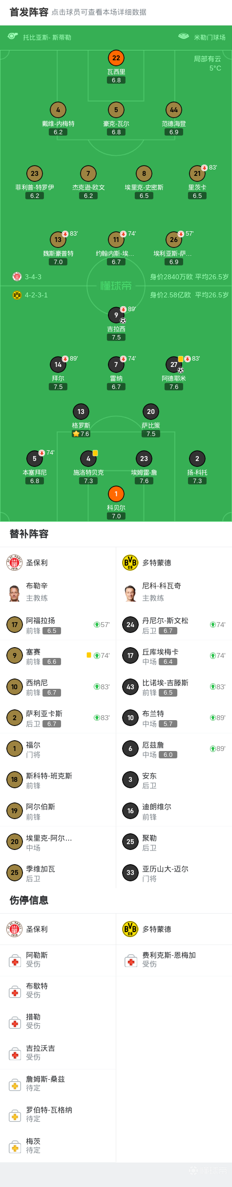 值得一提的是,多特蒙德的换人调整也起到了积极作用。第74分钟,丘库埃梅卡和斯文松替补登场,为球队带来了更多的活力和机会。尽管在第77分钟吉拉西的进球被吹越位在先,但球队并未受到太大影响,继续保持攻势。最终,布兰特的替补登场也为球队带来了更多的变化,让圣保利难以抵挡多特蒙德的进攻。